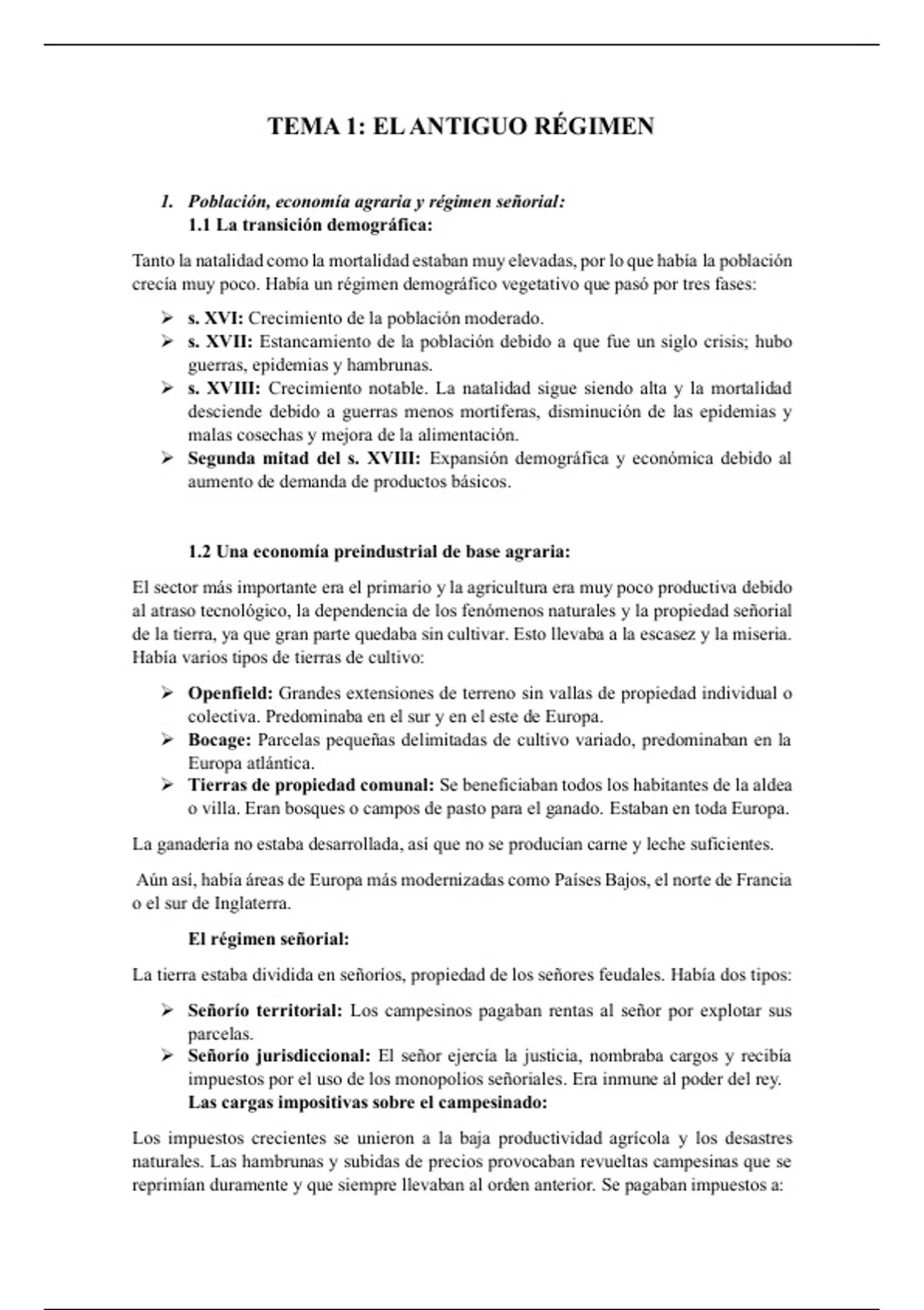 Sumario El Antiguo Régimen - Historia del Mundo Contemporáneo