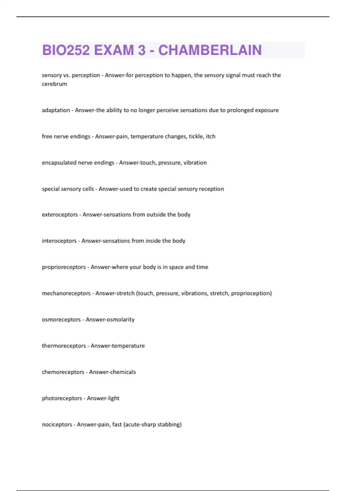 BIO252 EXAM 3 - CHAMBERLAIN QUESTIONS WITH 100 % C0RRECT ANSWERS