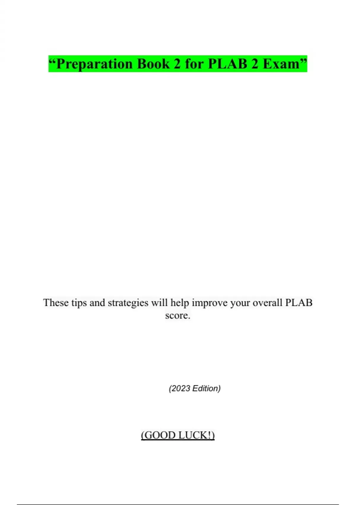Golden Preparation Package for PLAB 2 Exam