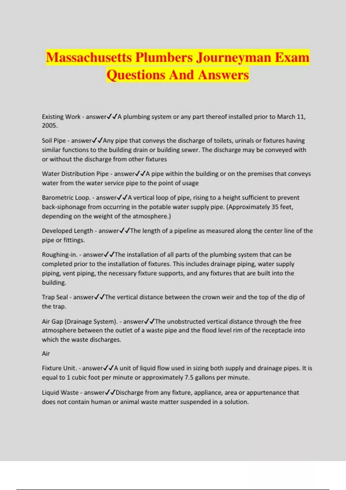 Massachusetts Plumbers Journeyman Exam Questions And Answers