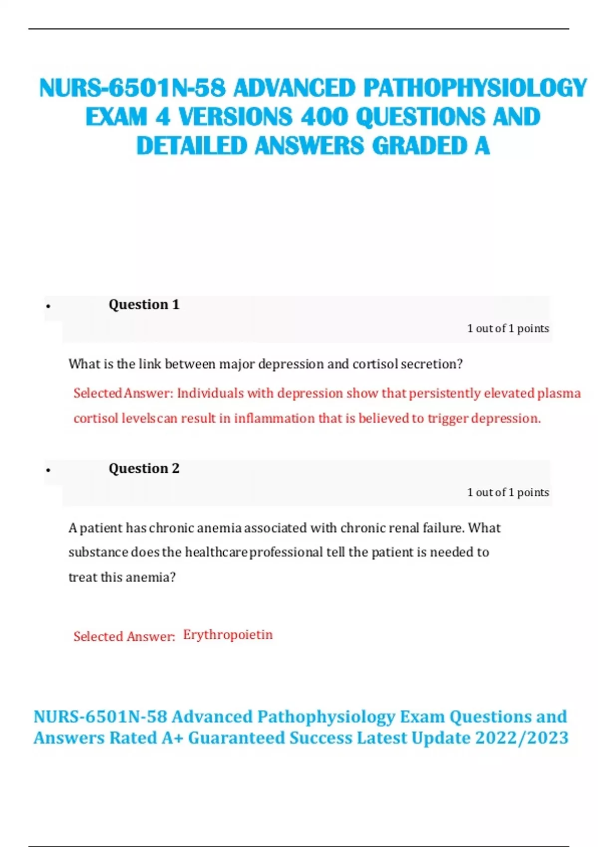 NURS 6501 ADVANCED PATHOPHYSIOLOGY FINAL AND MIDTERM EXAM 2024
