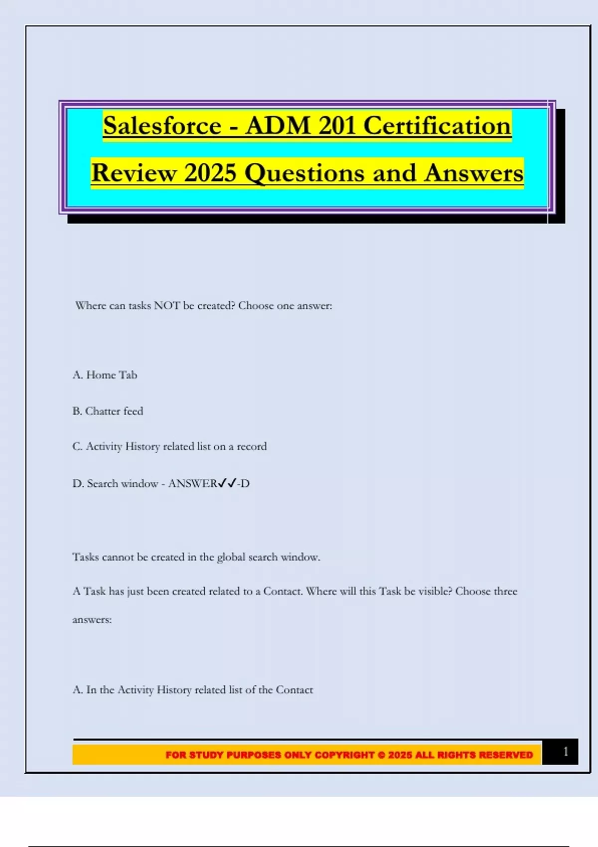 Salesforce - ADM 201 Certification Review 2025 Questions and Answers