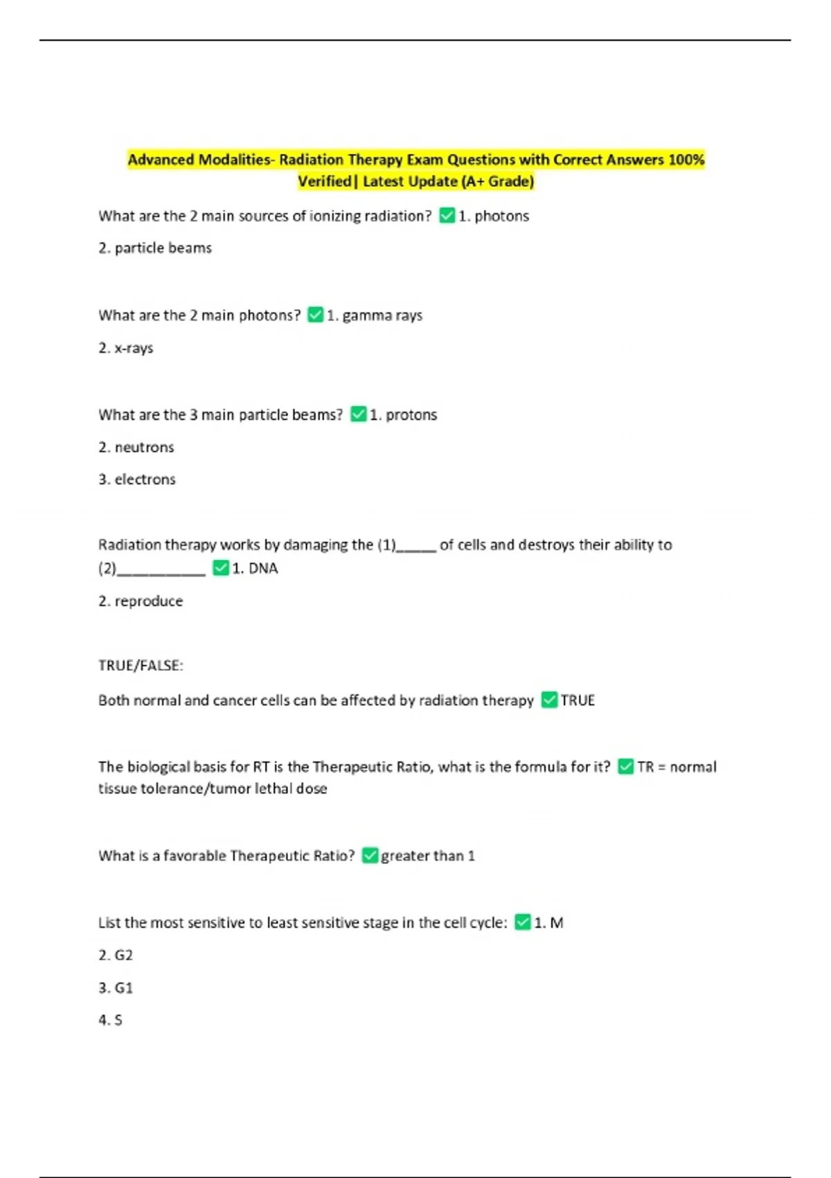 UV Radiation Therapy Exam Questions with Correct Answers 100% Verified| Latest Update (A+ Grade) 10 Exam (elaborations) Radiation Therapy Exam Questions with Correct Answers 100% Verified| Latest Update (A+ Grade) 11 Exam (elaborations) Oncology Radiation Therapy Exam Questions with Correct Answers 100% Verified| Latest Update (A+ Grade) 12 Exam