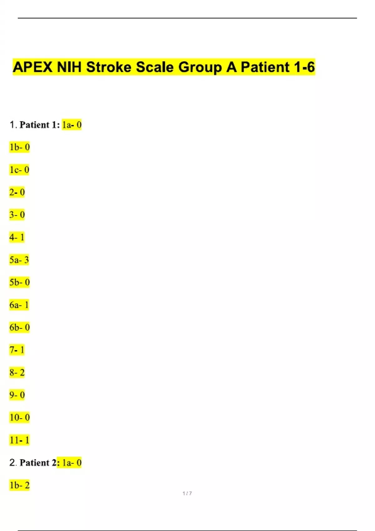 APEX NIH Stroke Scale Group A Patient 1-6 Answer key Updated Spring 2024/2025