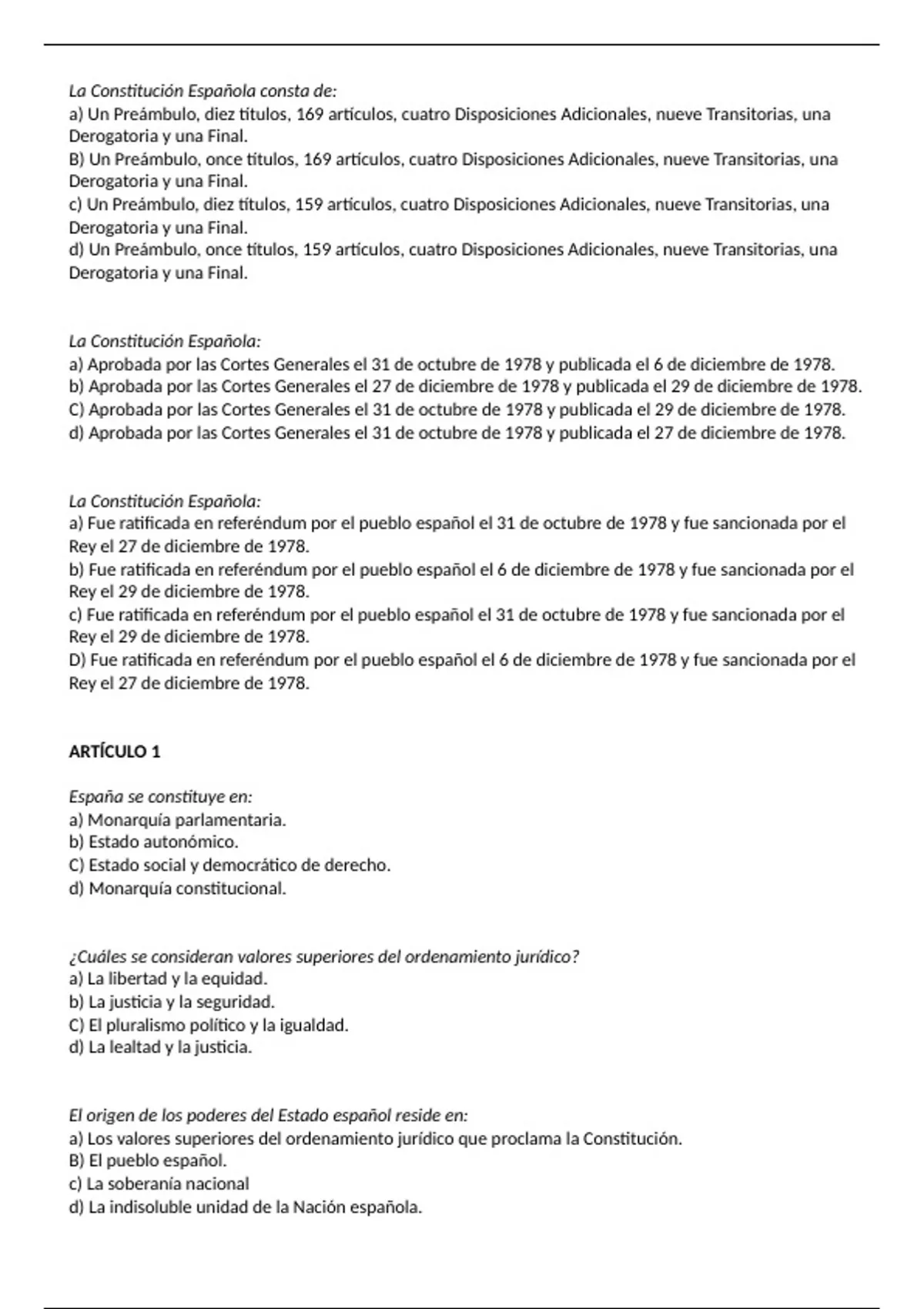 Tipo test Constitución