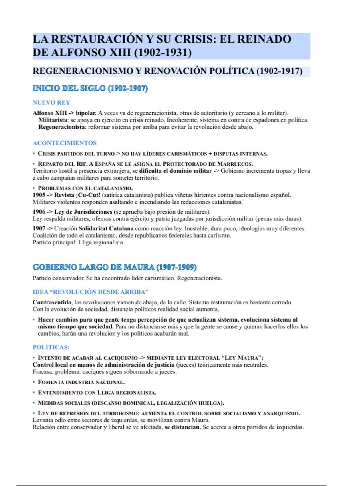 Sumario Alfonso XIII () Comunidad Valenciana 2º Bachillerato