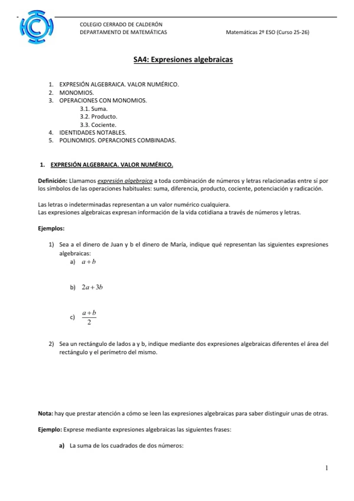 EXPRESIONES ALGEBRAICAS