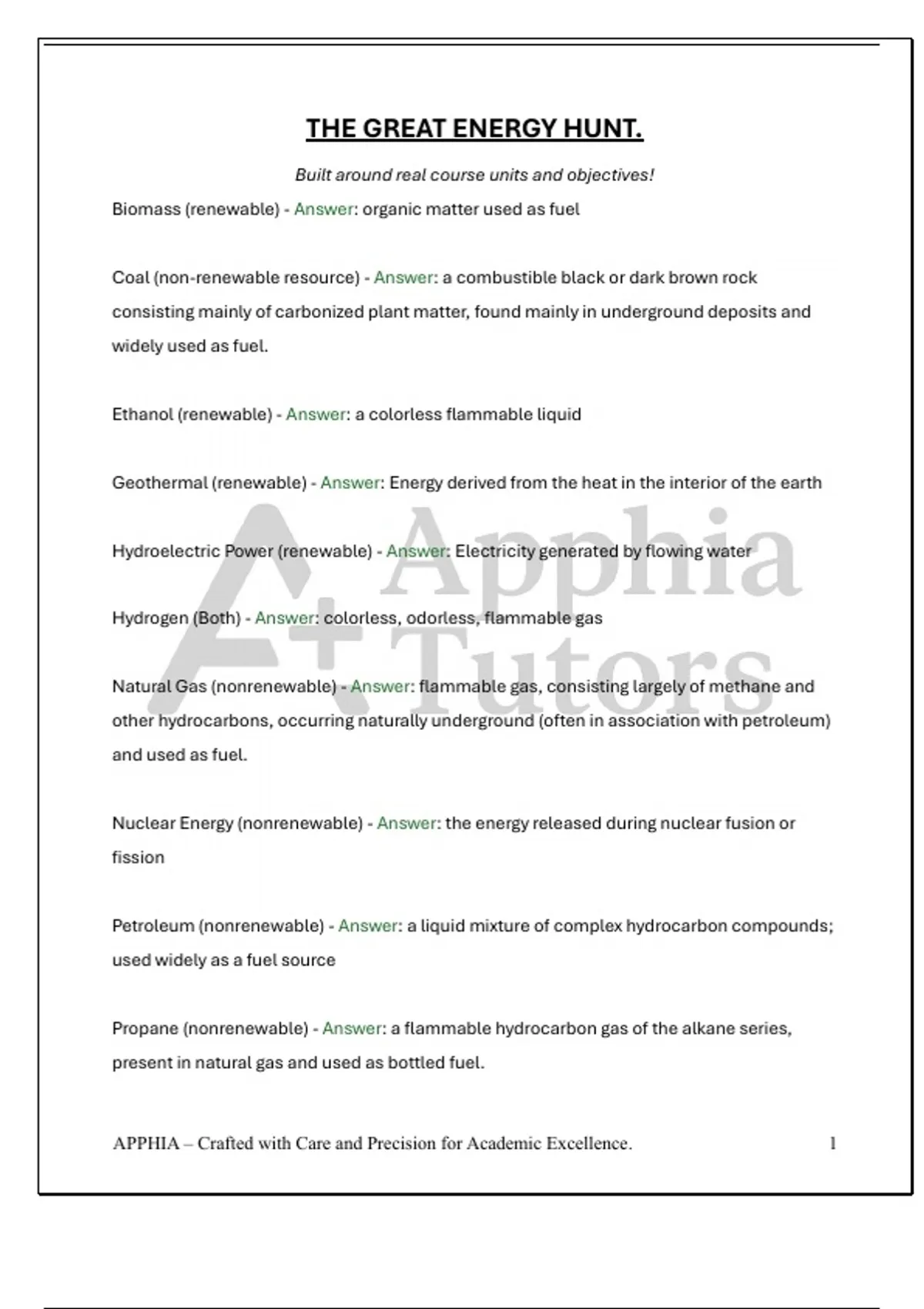 THE GREAT ENERGY HUNT. Built around real course units and objectives!