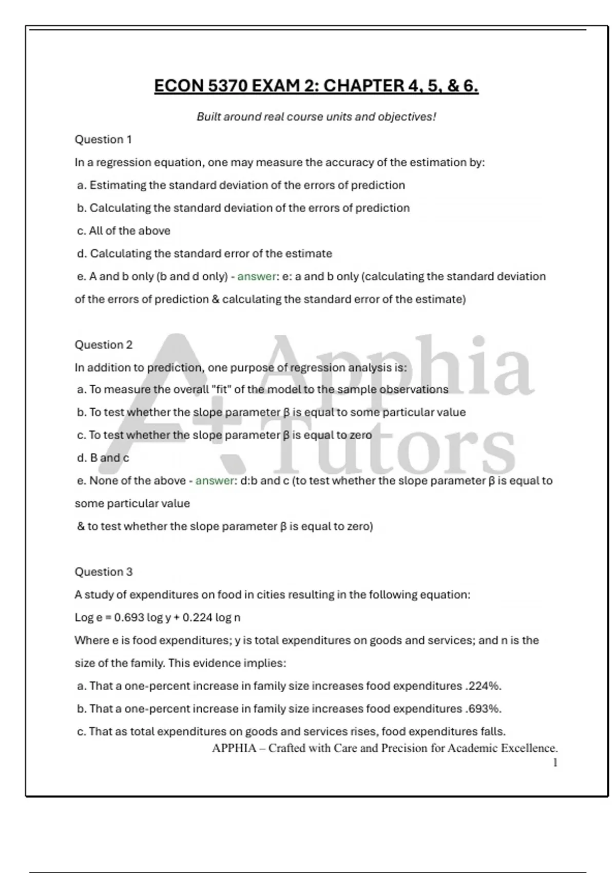 e. That as family size increases, food expenditures go down. - answer: a: that a one-