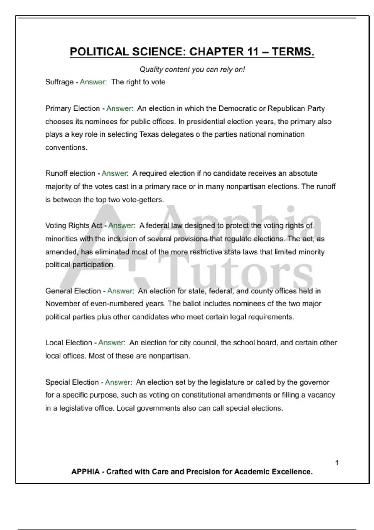 Suffrage - Answer: The right to vote
