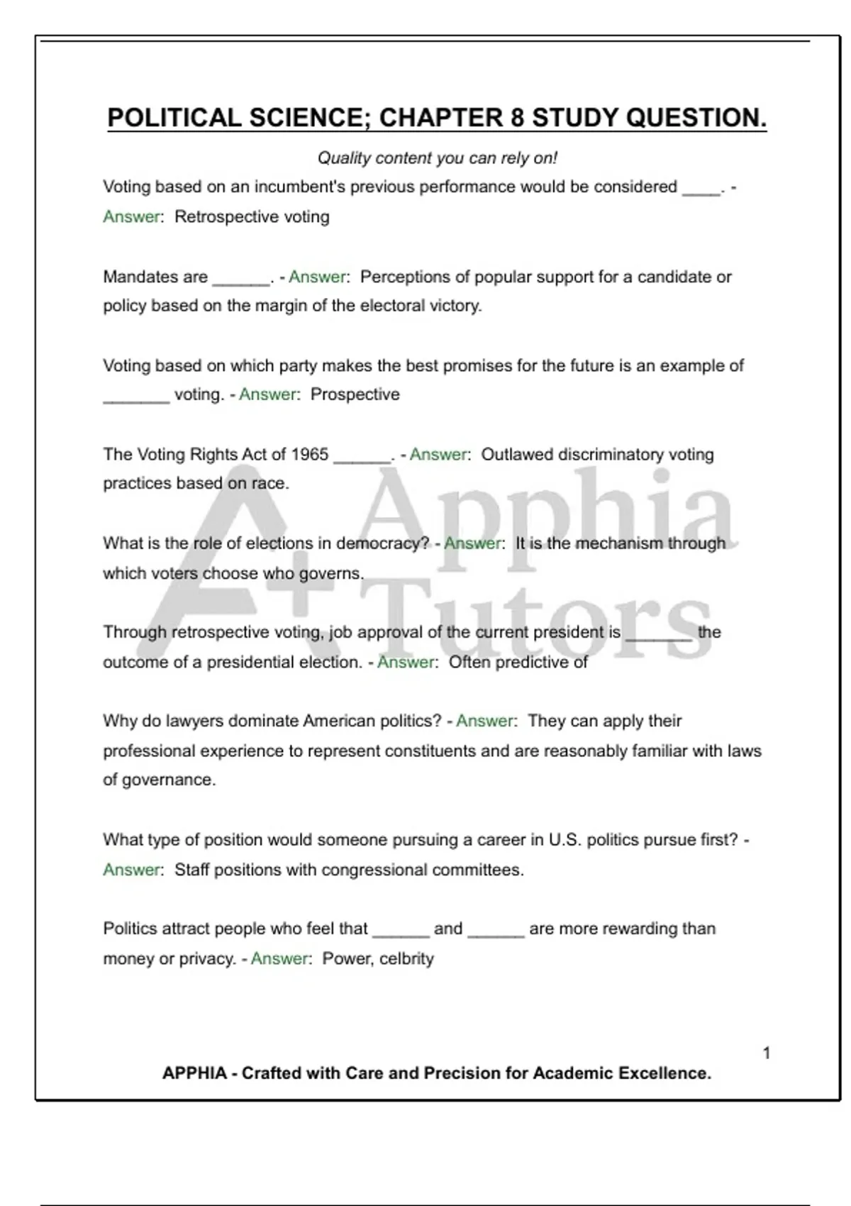 What is the role of elections in democracy? - Answer: It is the mechanism through