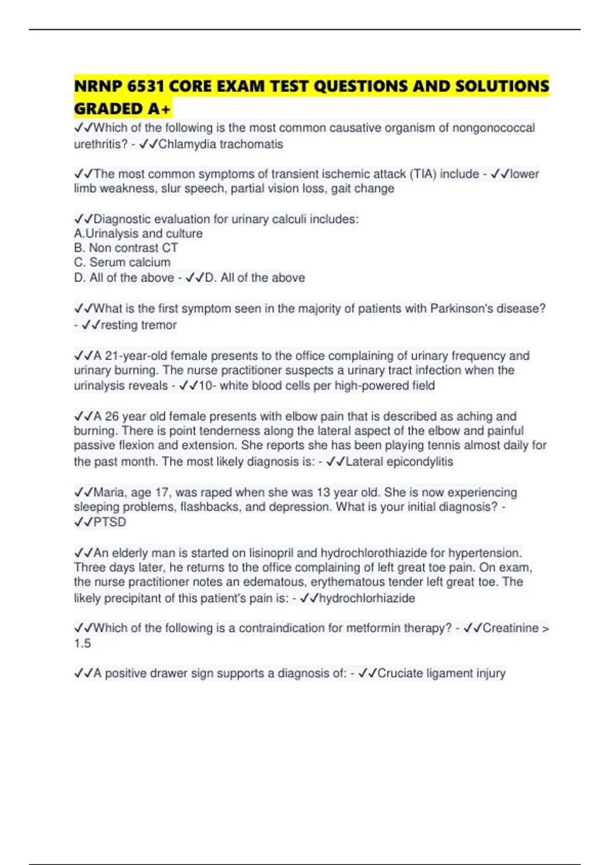 NRNP 6531 CORE EXAM TEST QUESTIONS AND SOLUTIONS GRADED A+