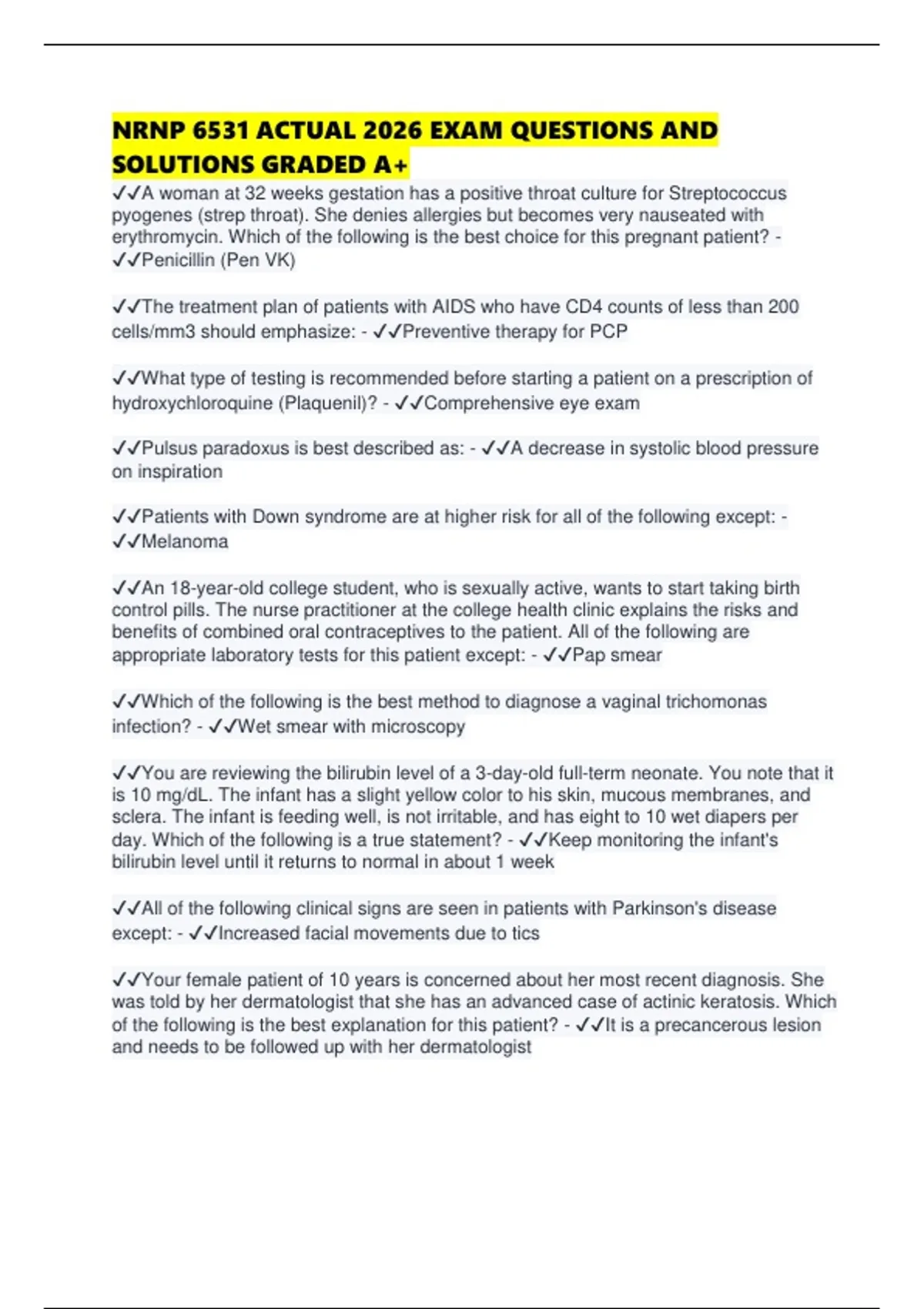 NRNP 6531 ACTUAL 2026 EXAM QUESTIONS AND SOLUTIONS GRADED A+