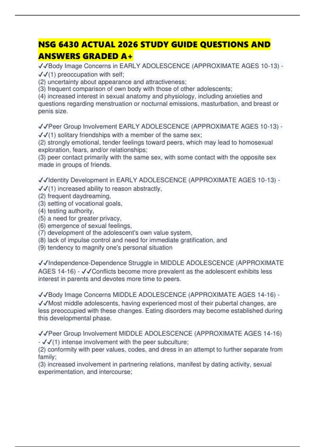 NSG 6430 ACTUAL 2026 STUDY GUIDE QUESTIONS AND