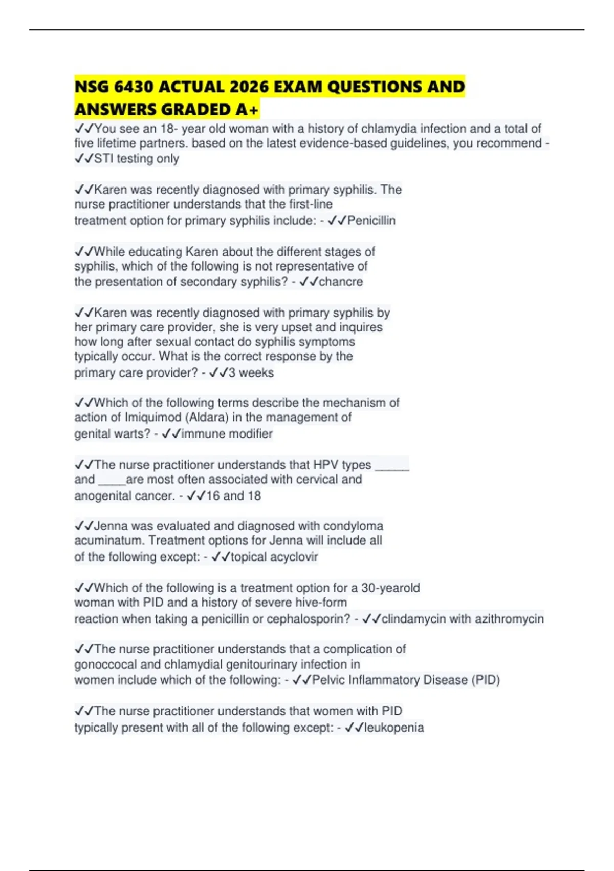 NSG 6430 ACTUAL 2026 EXAM QUESTIONS AND ANSWERS GRADED A+