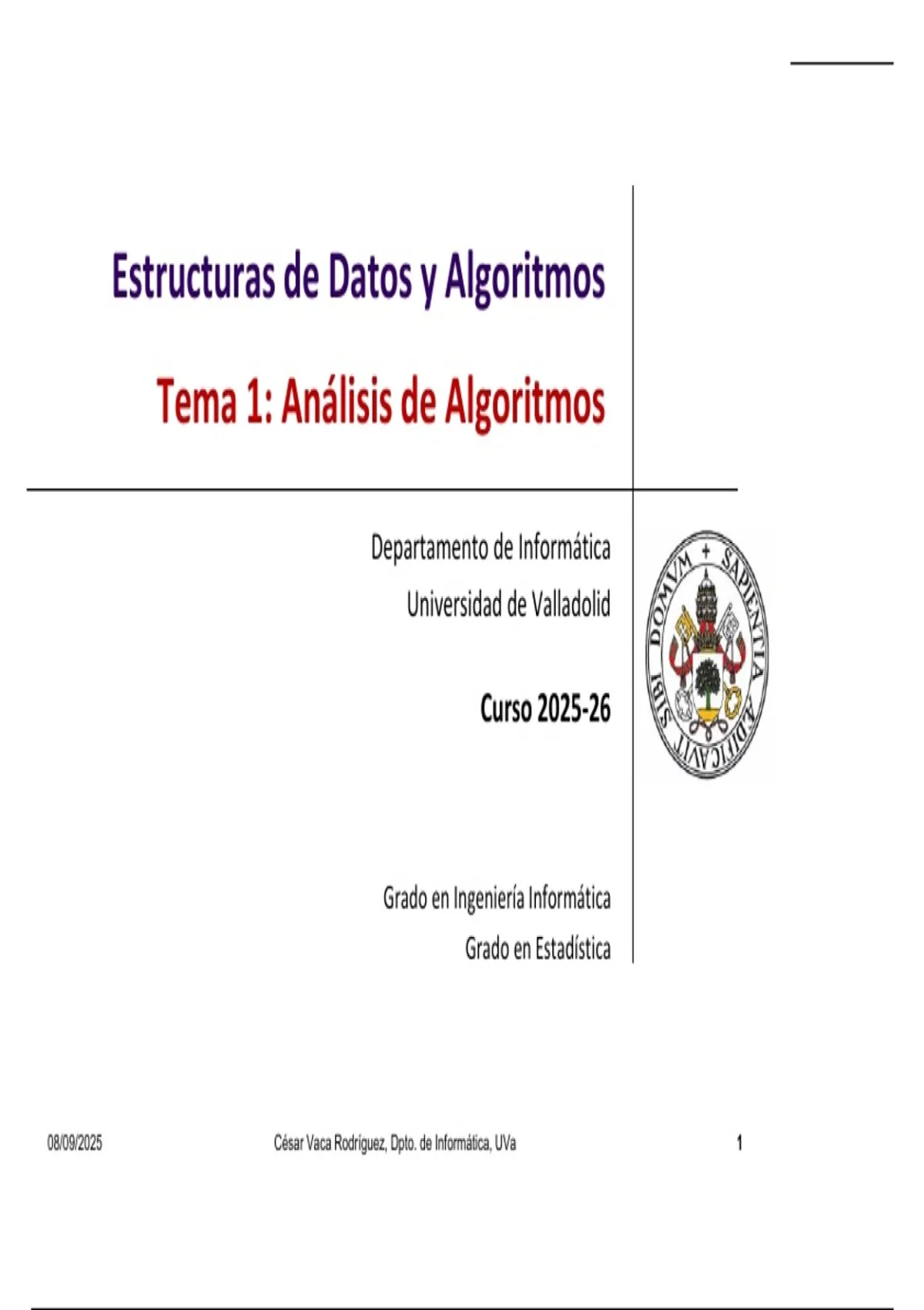 08/09/2025 César Vaca Rodríguez, Dpto. de Informática, UVa 1