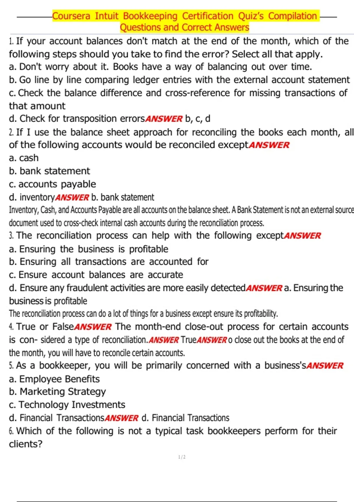 Coursera Intuit Bookkeeping Certification Quiz’s Compilation