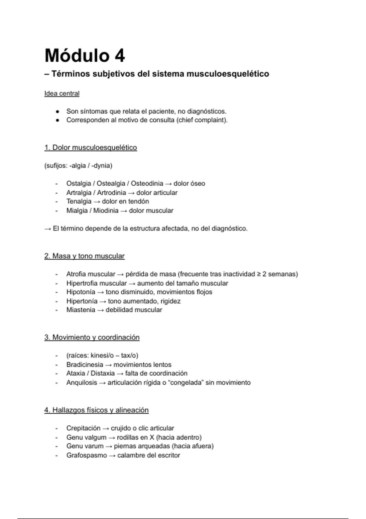 – Términos subjetivos del sistema musculoesquelético