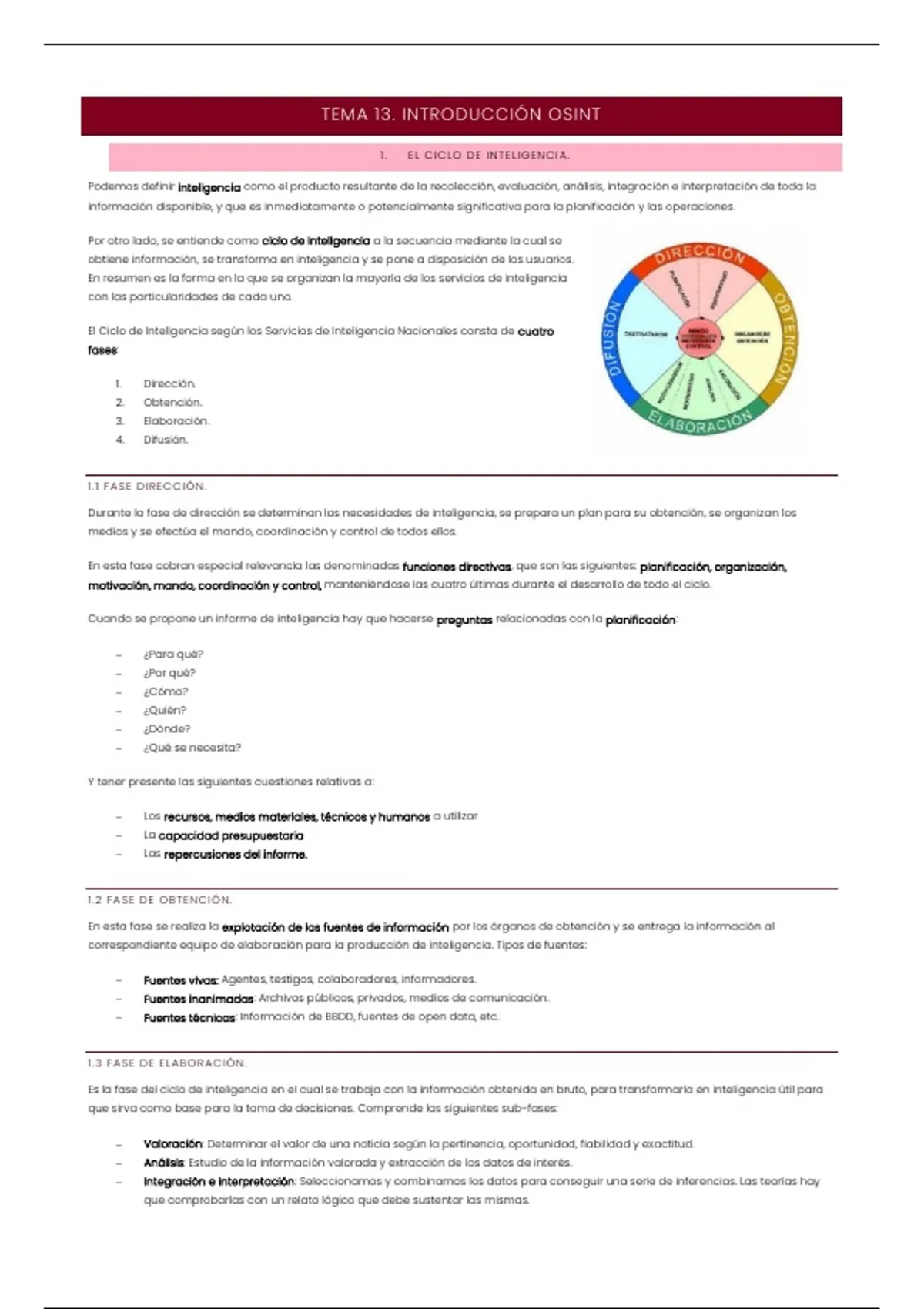 Durante la fase de dirección se determinan las necesidades de inteligencia, se prepara un plan para su obtención, se organizan los