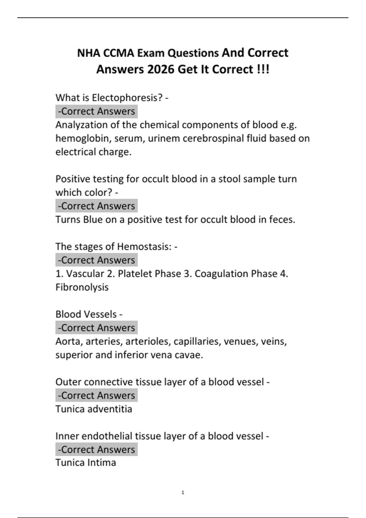 NHA CCMA Exam Questions And Correct Answers 2026 Get It Correct !!!