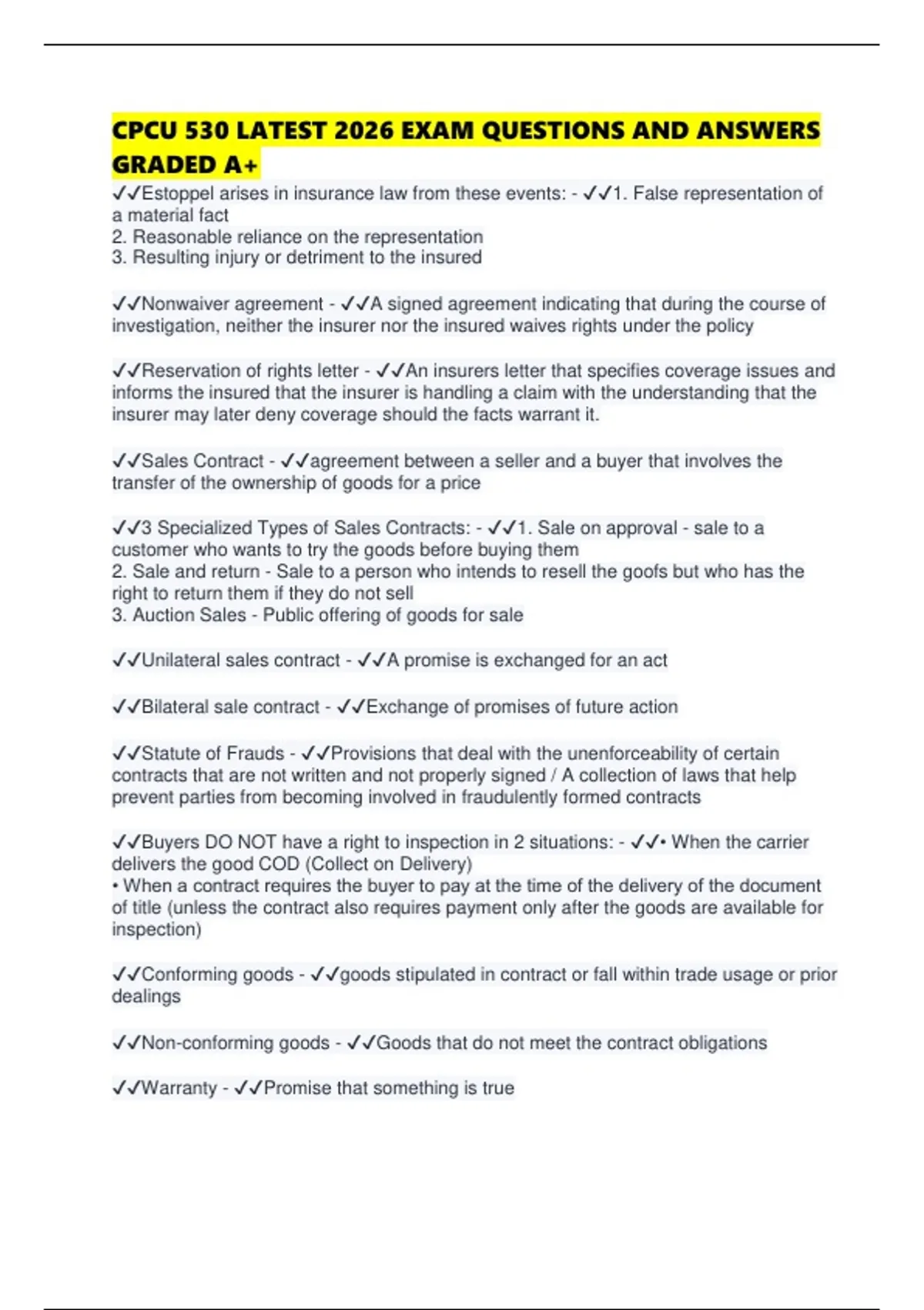 ✔✔Estoppel arises in insurance law from these events: - ✔✔1. False representation of