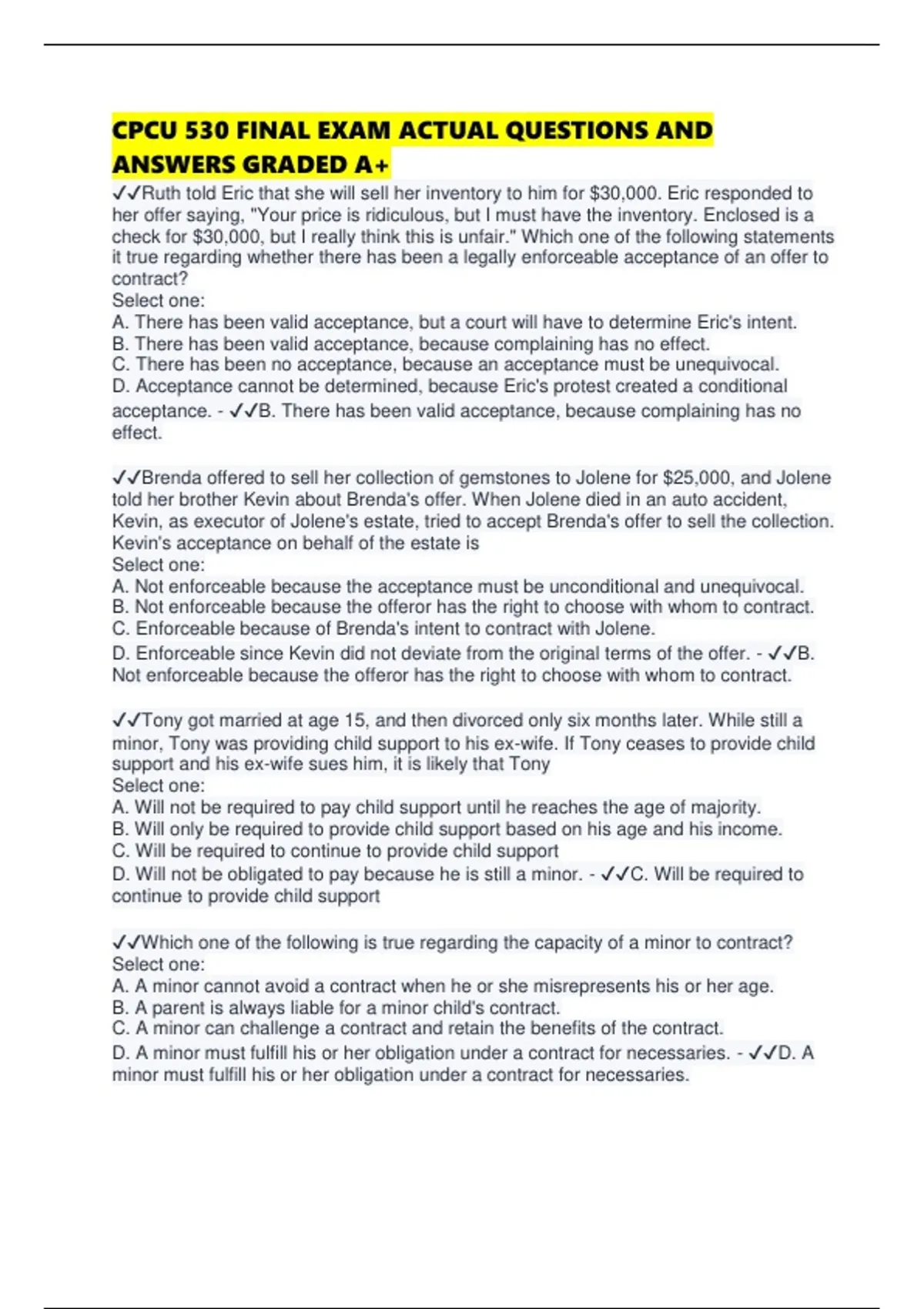 D. Enforceable since Kevin did not deviate from the original terms of the offer. - ✔✔B.