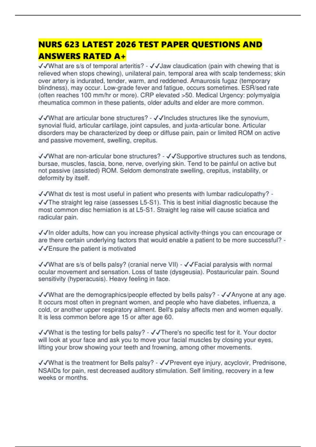 NURS 623 LATEST 2026 TEST PAPER QUESTIONS AND ANSWERS RATED A+