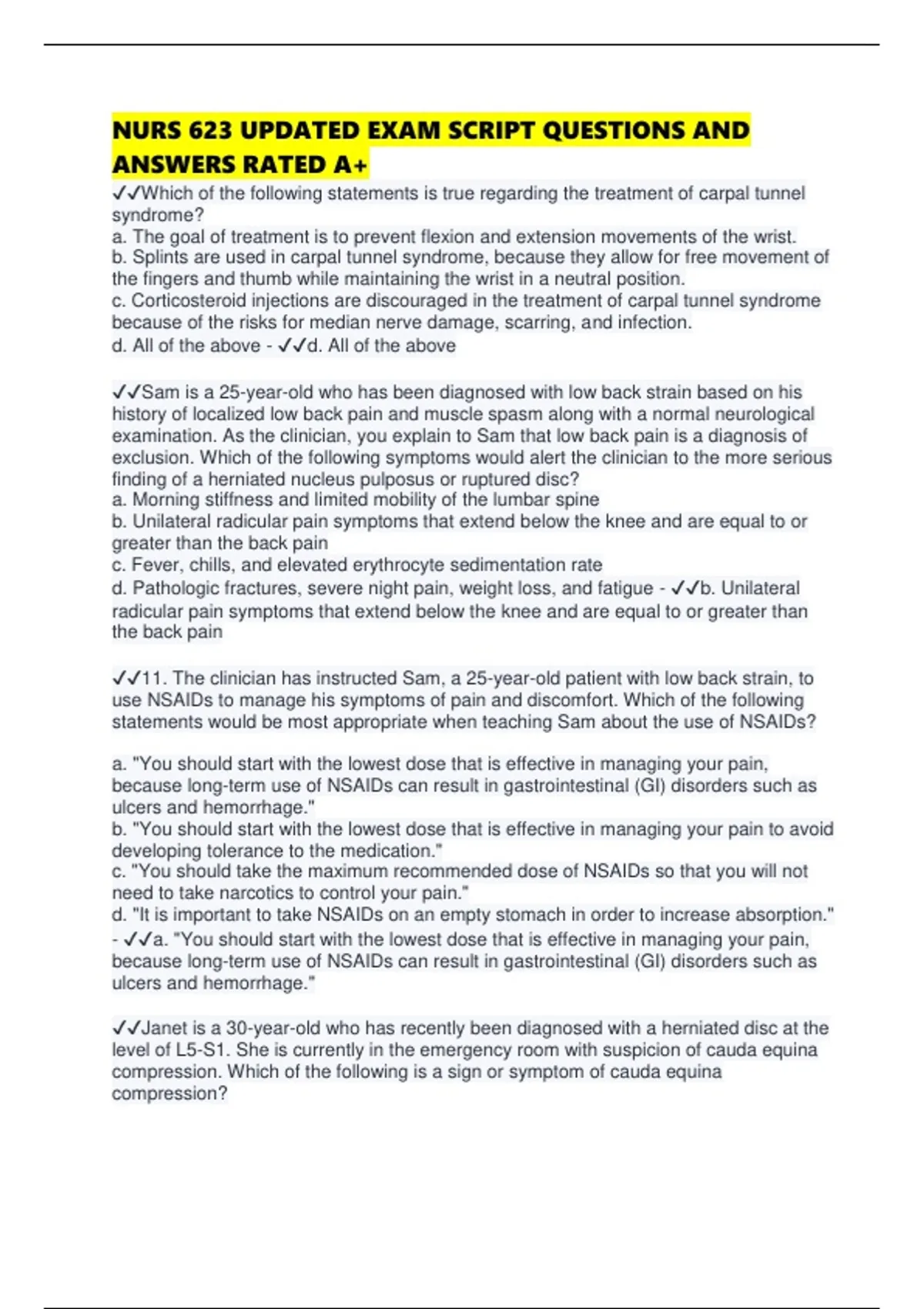 NURS 623 UPDATED EXAM SCRIPT QUESTIONS AND