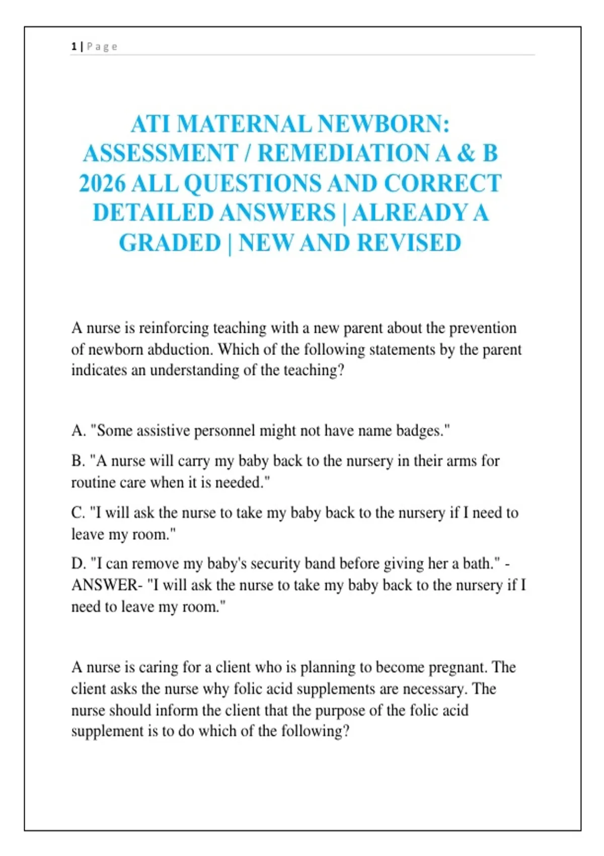 ANSWER- "I will ask the nurse to take my baby back to the nursery if I
