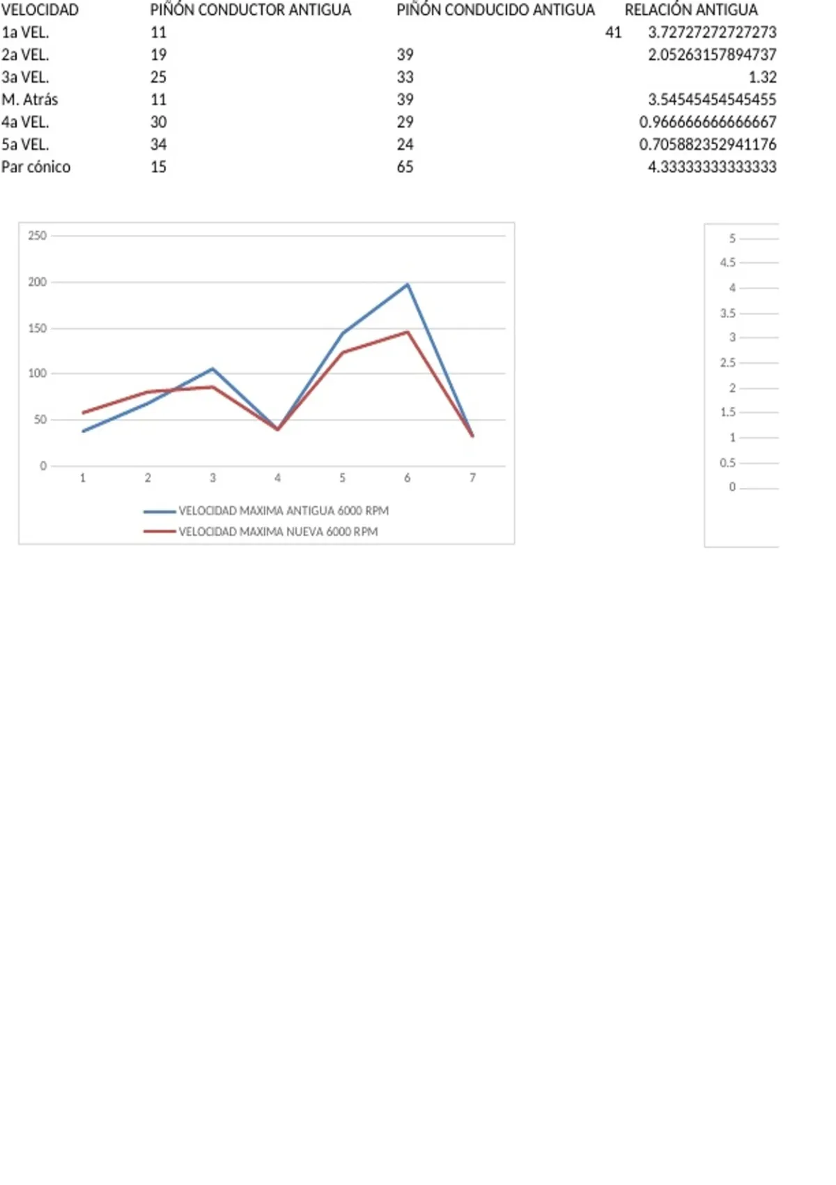 ,VELOCIDAD MAXIMA ANTIGUA 6000 RPM PIÑÓN CONDUCTOR NUEVA PIÑÓN CONDUCIDO RELACIÓN NUEVA