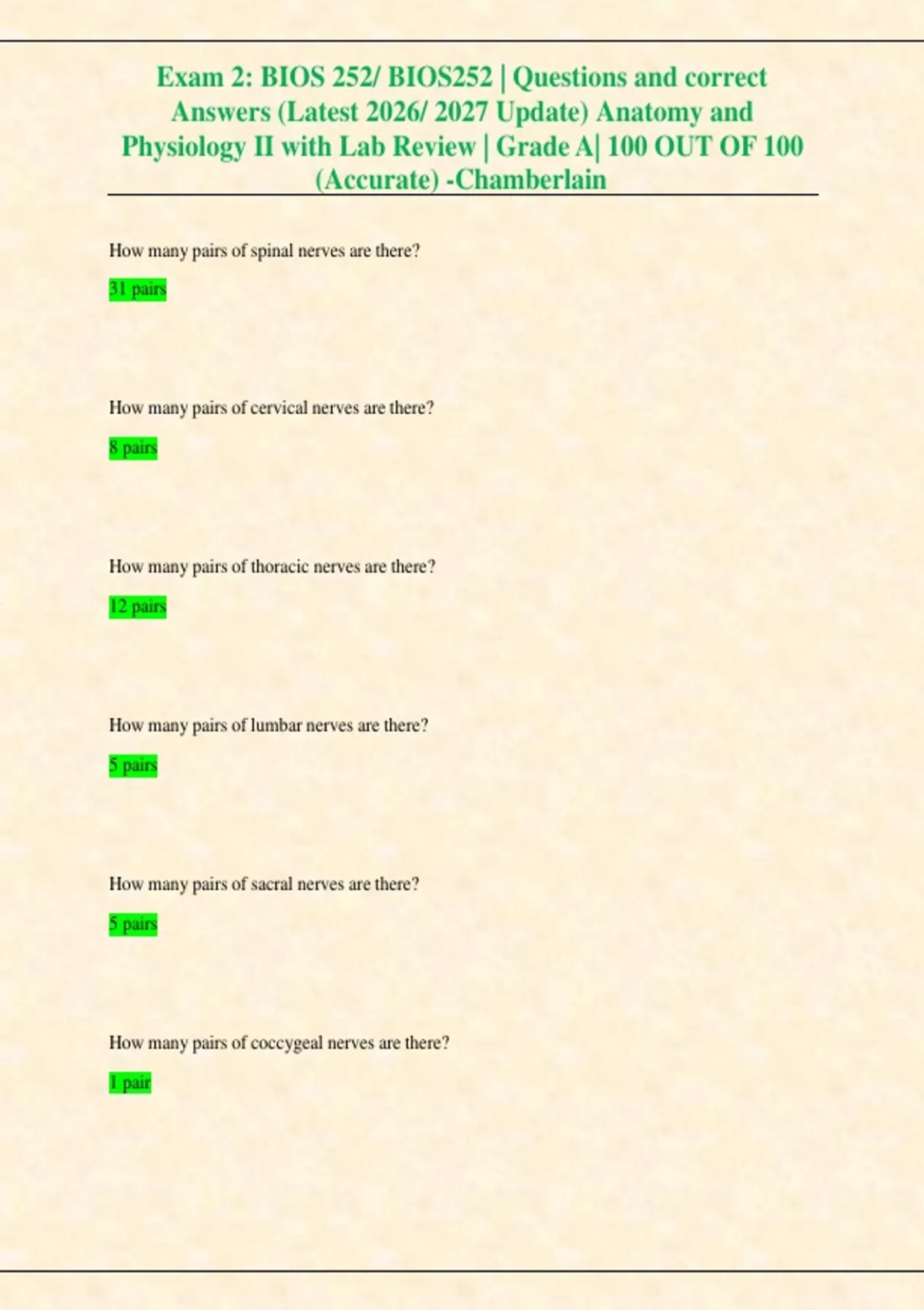 Answers (Latest 2026/ 2027 Update) Anatomy and