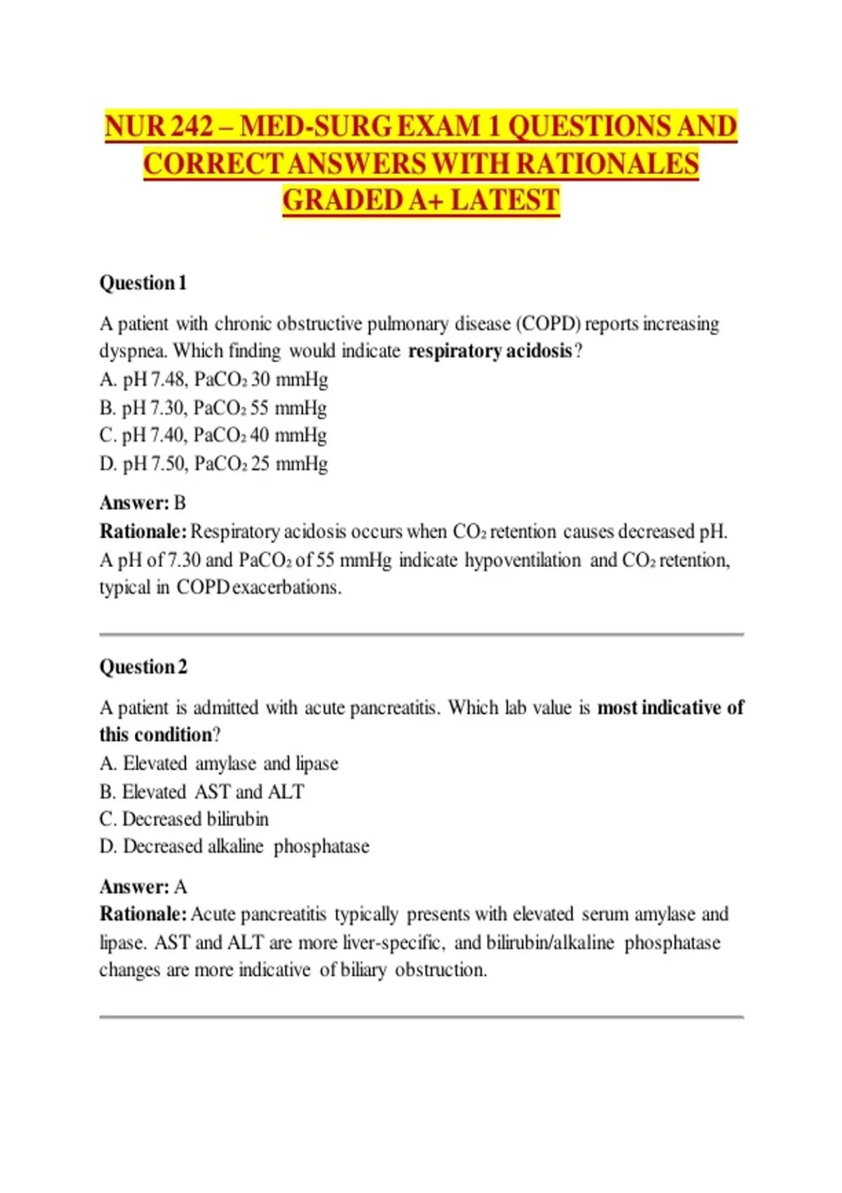 CORRECT ANSWERS WITH RATIONALES