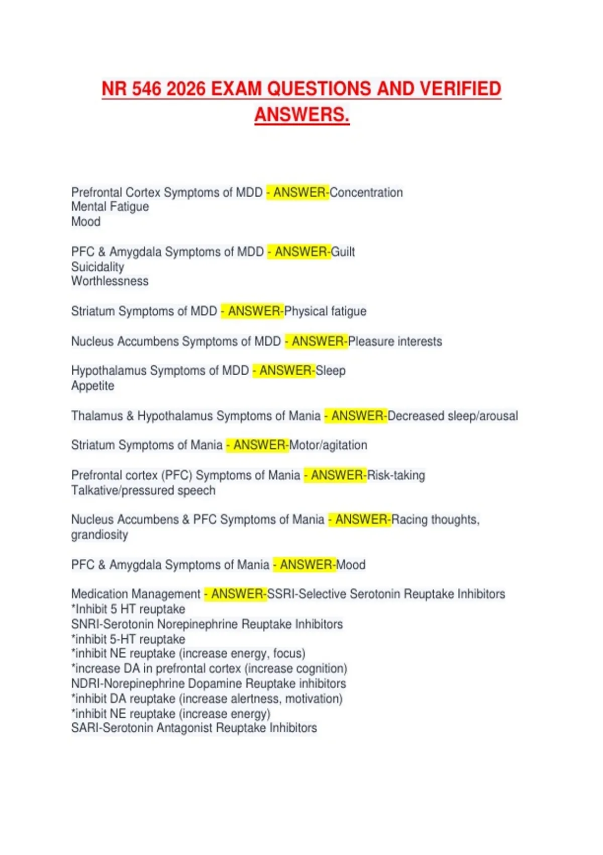 NR 546 2026 EXAM QUESTIONS AND VERIFIED