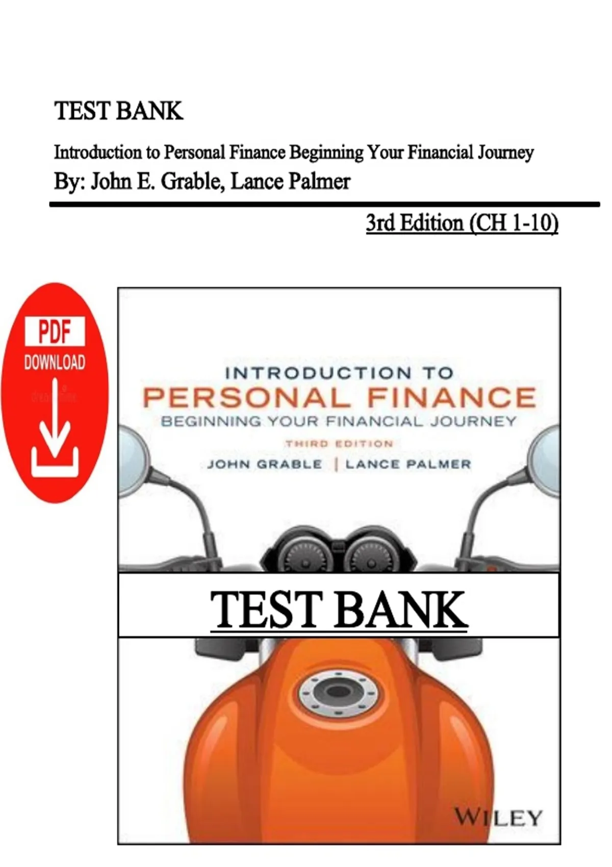 Test Bank – Introduction to Personal Finance 3rd Edition| John E. Grable | ISBN:9781394244003 | All Chapters 1–10 | Latest Edition Build confidence in managing money with this complete Test Bank for Introduction to Personal Finance: Beginning Your Financial Journey, 3rd Edition by John E. Grable. This all-chapters (1–10) PDF provides comprehensive exam-style practice questions designed to reinforce key concepts in personal finance and financial planning. Topics include budgeting and cash flow, credit and debt management, saving and investing fundamentals, risk management and insurance, retirement planning, taxes, financial goals, consumer finance, interest calculations, and time value of money. Introduction to Personal Finance test bank PDF, John E. Grable personal finance 3rd edition, personal finance chapters 1–10 questions and answers, financial literacy practice questions, instant download finance test bank, college personal finance study guide, budgeting and investing exam prep, financial planning test bank