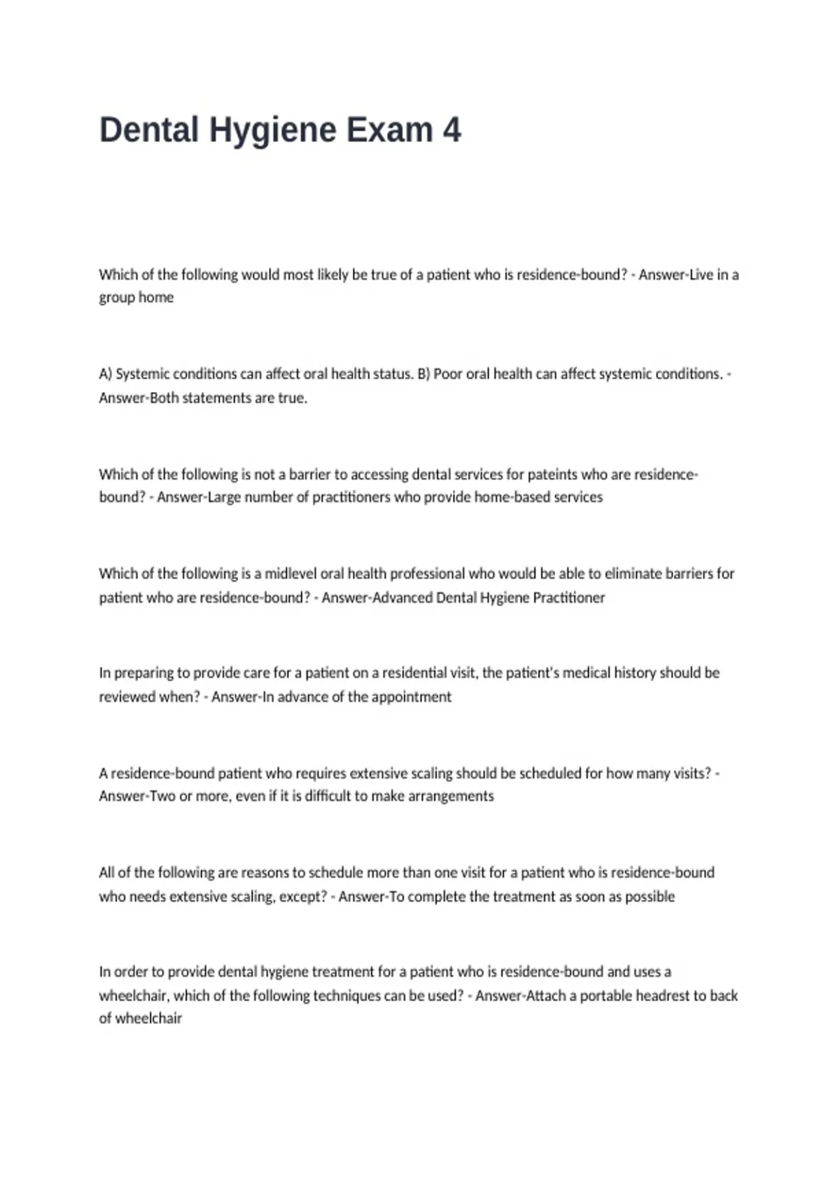Dental Hygiene Exam 4 Questions with Correct Answers