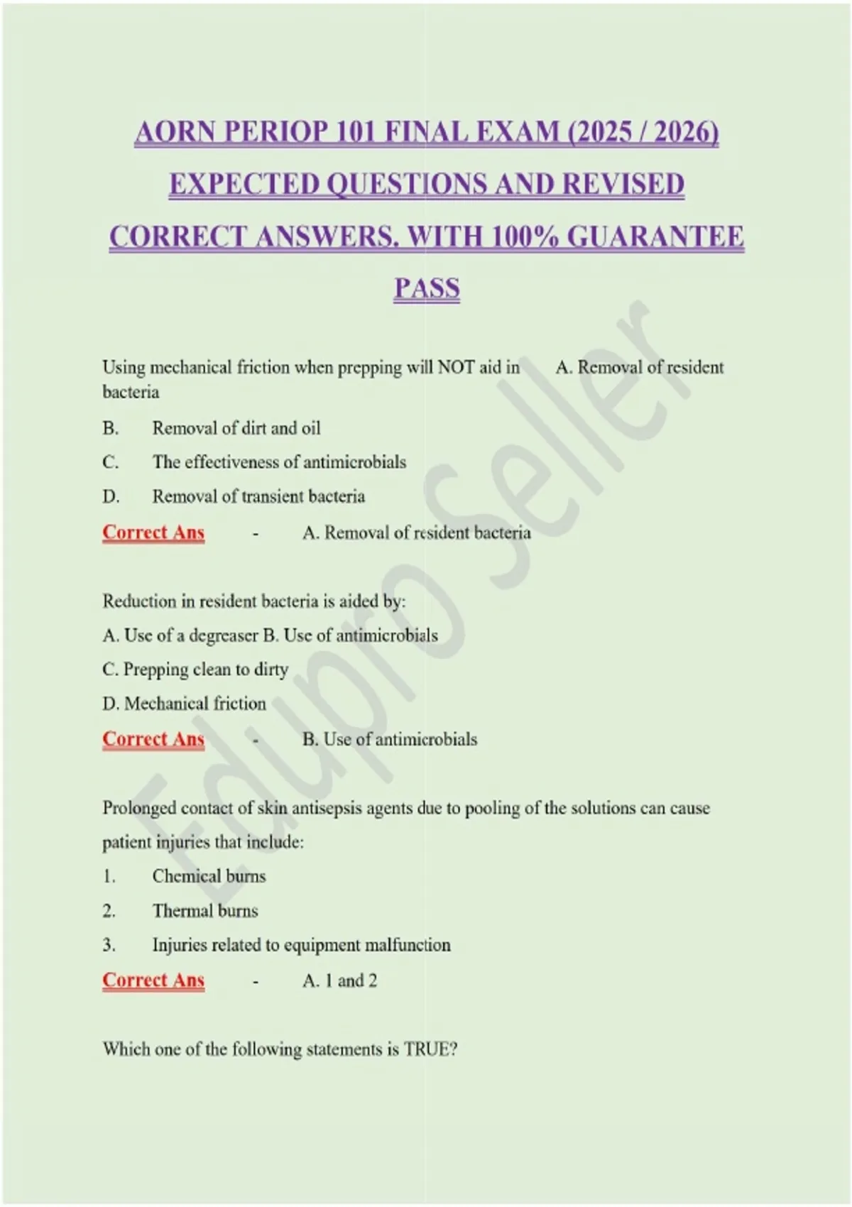 AORN PERIOP 101 FINAL EXAM (2025 / 2026) EXPECTED QUESTIONS AND REVISED CORRECT ANSWERS. WITH 100% GUARANTEE PASS