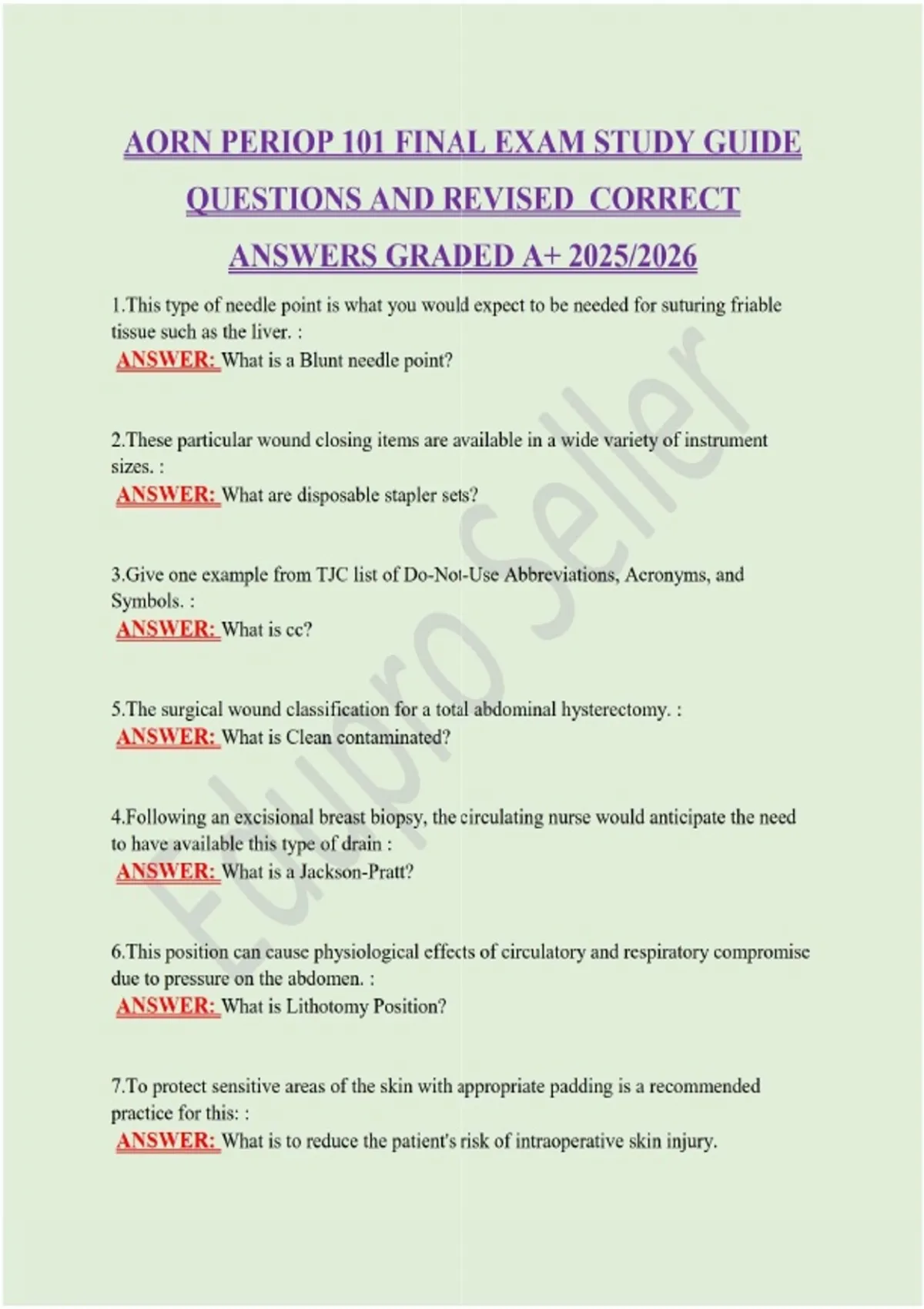 AORN PERIOP 101 FINAL EXAM STUDY GUIDE QUESTIONS AND REVISED CORRECT ANSWERS GRADED A+ 2025/2026