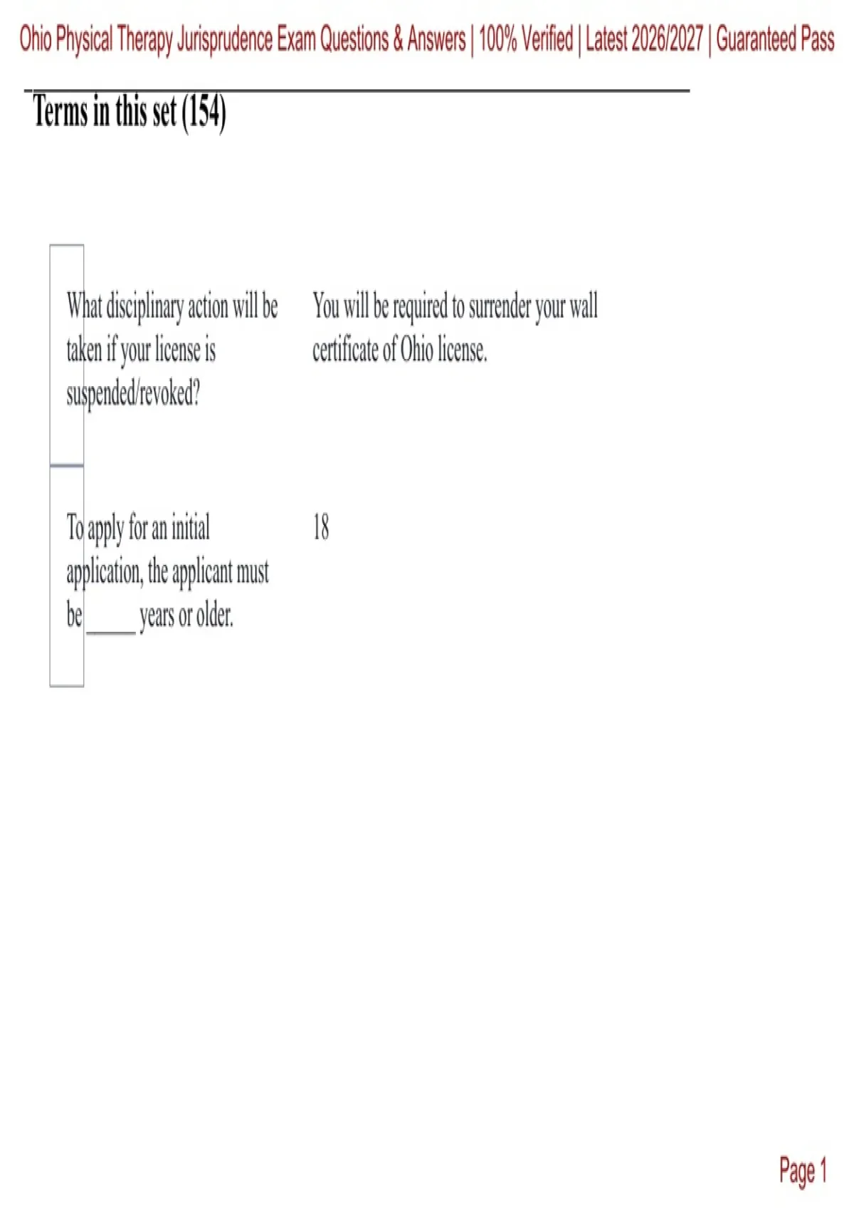 , Ohio Physical Therapy Jurisprudence Exam Questions & Answers | 100% Verified | Latest 2026/2027 | Guaranteed Pass