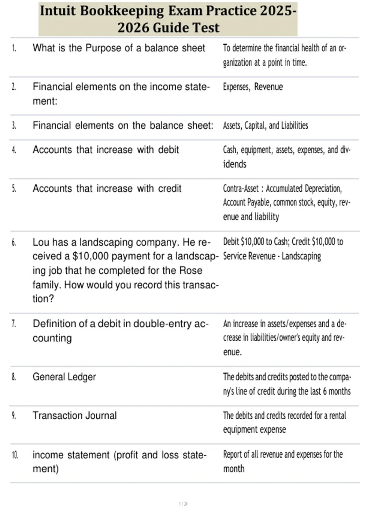 Intuit Bookkeeping Exam Practice 2025-