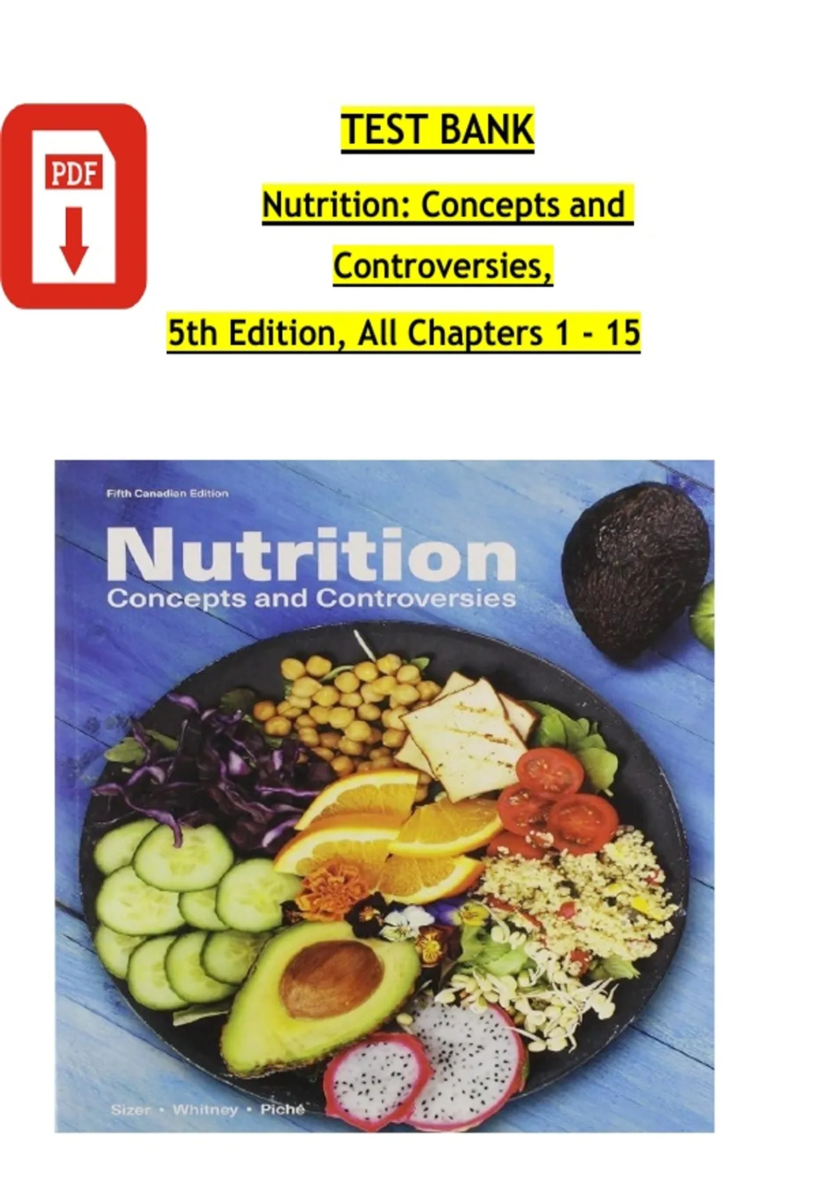 This A+ graded Test Bank for Nutrition: Concepts and Controversies, 5th Edition by Leonard Piché, Frances Sizer, and Ellie Whitney (Latest 2026 Update) is a comprehensive study resource for students preparing for nutrition, dietetics, and health science exams. It includes chapter-by-chapter multiple-choice questions with verified correct answers, closely aligned with textbook content and real-world nutrition applications. What’s included: ️ Multiple-choice test bank questions ️ Correct answers provided ️ Organized chapter-by-chapter ️ Scenario-based application questions ️ Focus on nutrition science and health concepts Major topics covered: fundamentals of human nutrition macronutrients and micronutrients digestion, absorption, and metabolism energy balance, weight management, and fitness vitamins, minerals, and deficiencies food safety and technology lifecycle nutrition and special populations controversies in nutrition and media claims Ideal for: nutrition and dietetics students health science and nursing programs exam and quiz preparation instructors creating assessments self-study or group review Benefits:
