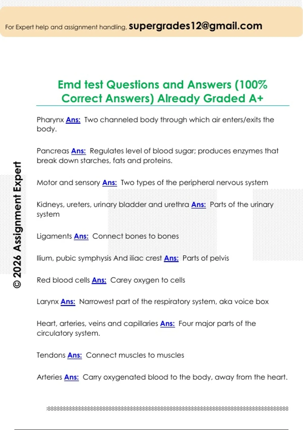 Emd test Questions and Answers (100%
