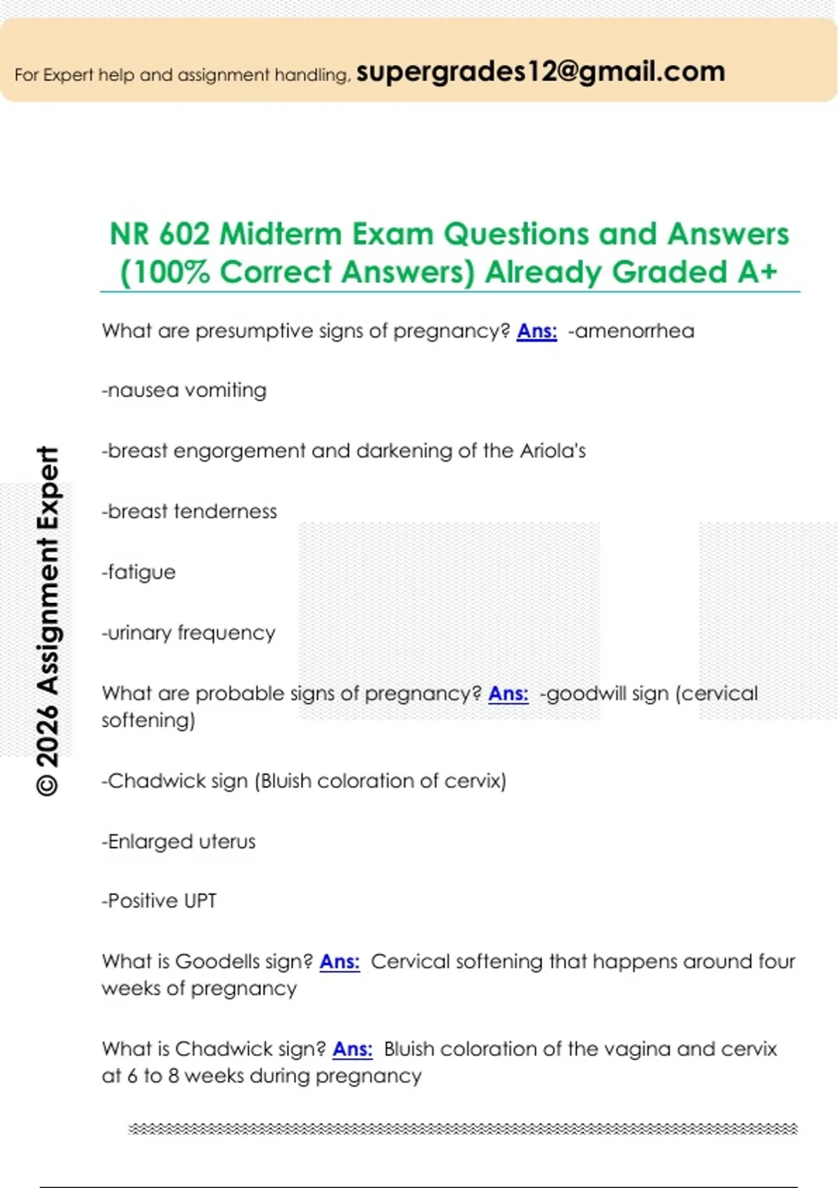 NR 602 Midterm Exam Questions and Answers (100% Correct Answers) Already Graded A+