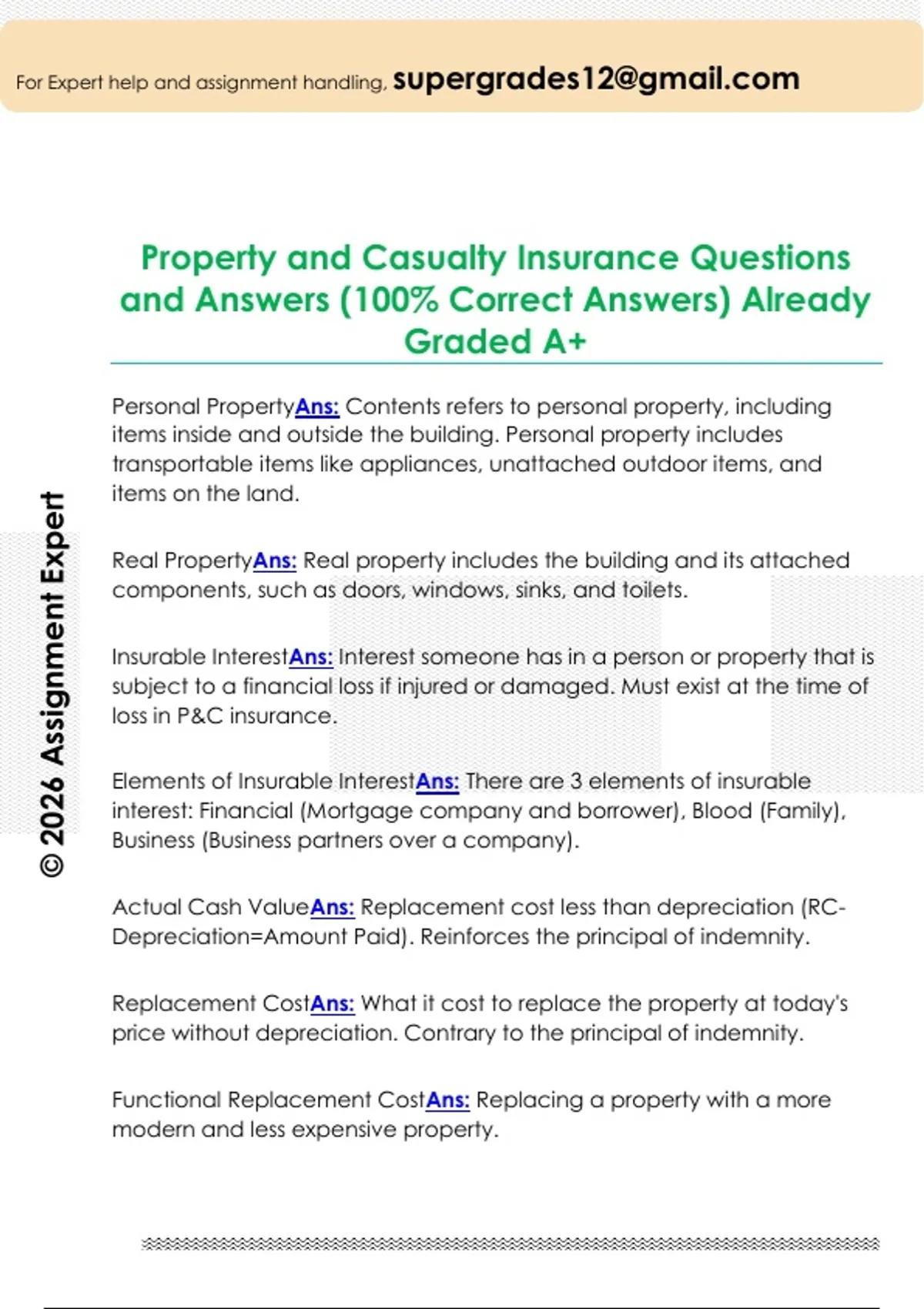 Property and Casualty Insurance Questions and Answers (100% Correct Answers) Already Graded A+