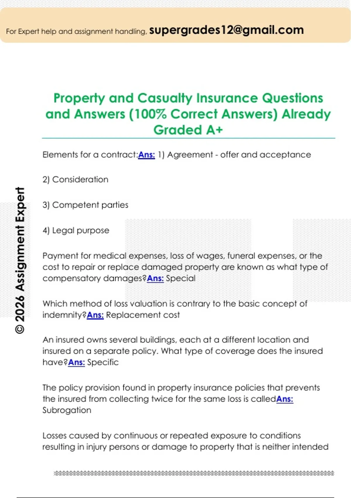 Property and Casualty Insurance Questions