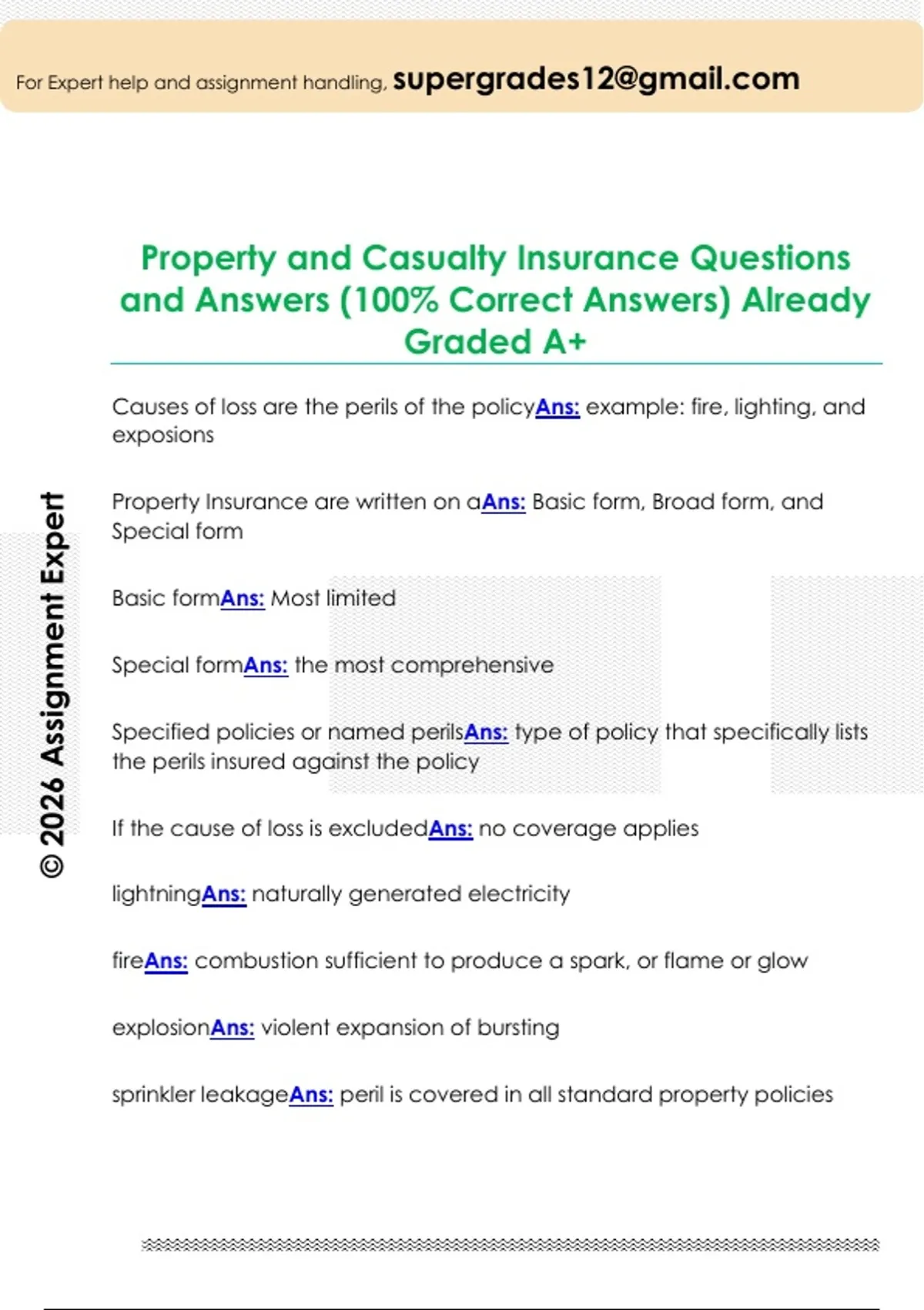 Property and Casualty Insurance Questions