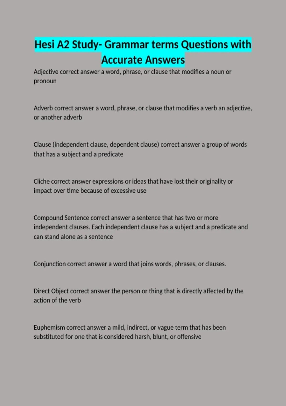 Adjective correct answer a word, phrase, or clause that modifies a noun or