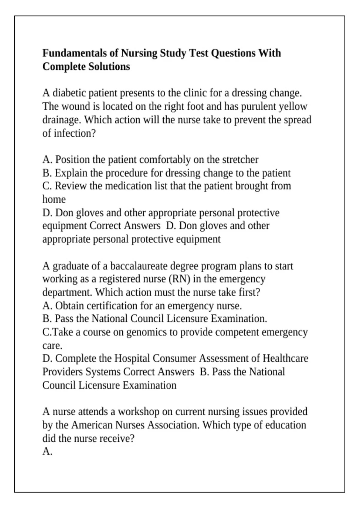 Fundamentals of Nursing Study Test Questions With Complete Solutions