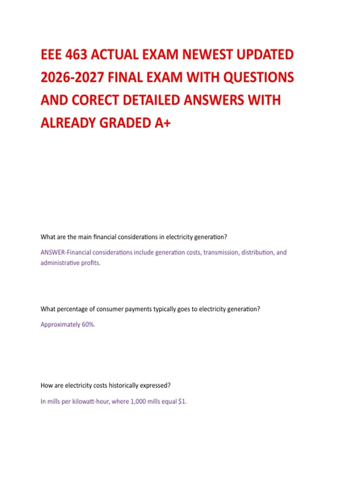 EEE 463 ACTUAL EXAM NEWEST UPDATED