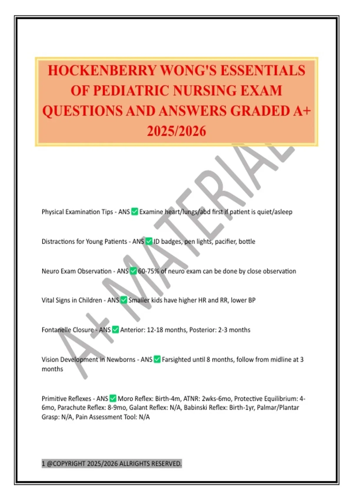 OF PEDIATRIC NURSING EXAM