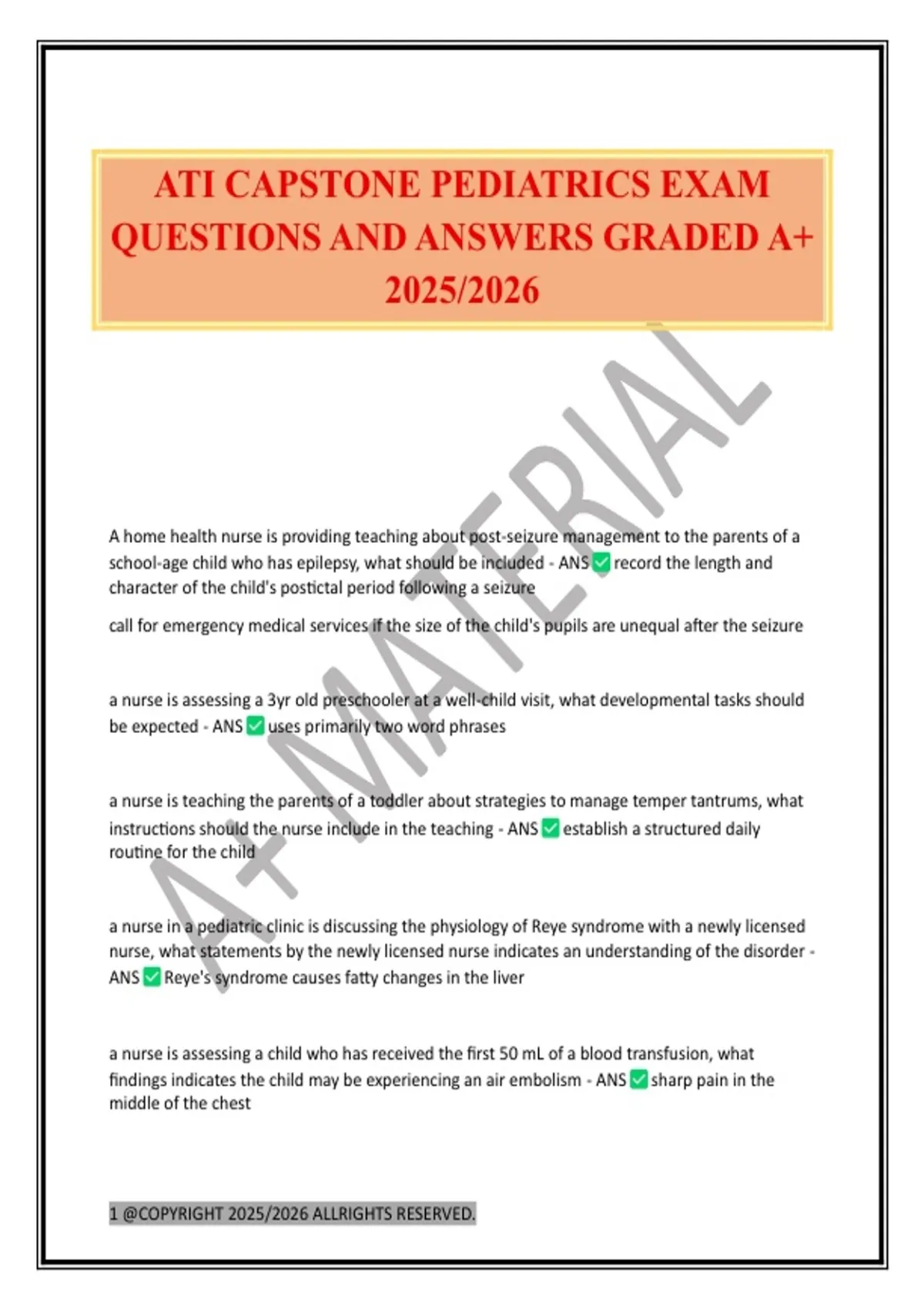 ATI CAPSTONE PEDIATRICS EXAM QUESTIONS AND ANSWERS GRADED A+ 2025/2026
